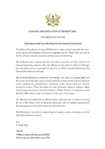It assured the public that any policy directive or rollout regarding the use of the Ghana Card for financial transactions would be formally communicated through its official and verified channels.