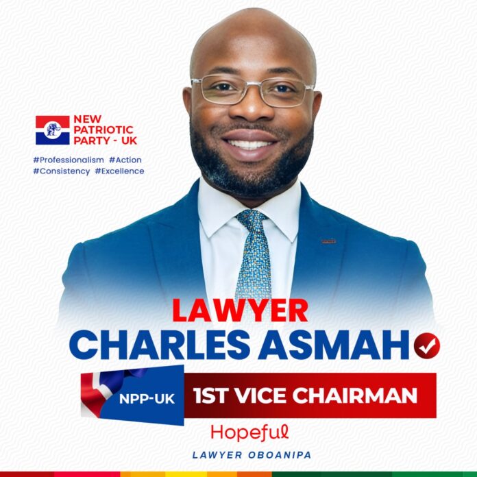 Lawyer Charles Asmah has officially declared his intention to contest for the position of First Vice Chairman of the New Patriotic Party (NPP-UK), appealing to members across branches to endorse his candidacy based on his years of dedicated service and proven leadership.