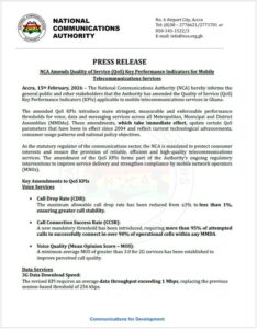 The regulator said the amended QoS framework is part of its ongoing effort to ensure reliable, efficient, and high-quality telecommunications services for all Ghanaians.