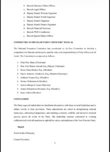 Meanwhile, the NEC has set up an ad hoc committee chaired by former national chairman Peter Mac Manu to develop a comprehensive manual outlining the roles and responsibilities of party officers across all levels.