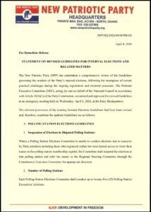 The New Patriotic Party (NPP) has approved revised guidelines governing its ongoing internal elections, following challenges encountered during the registration and electoral processes.