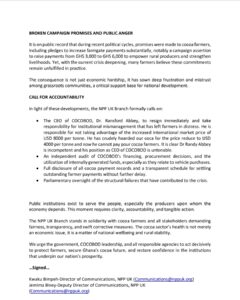 As part of its recommendations, NPP UK called for the resignation of COCOBOD Chief Executive Officer, Dr. Ransford Abbey, citing what it described as institutional mismanagement. The group also demanded an independent audit into COCOBOD’s financing and procurement activities, full disclosure of cocoa payment records, and increased parliamentary oversight of the cocoa sector.