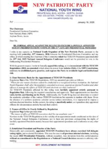 The National Youth Organiser of the New Patriotic Party (NPP), Salam Mustapha, has formally appealed a decision by the party’s Presidential Elections Committee (PEC) to exclude some TESCON Presidents from voting in the party’s upcoming presidential primaries scheduled for 31 January 2026.