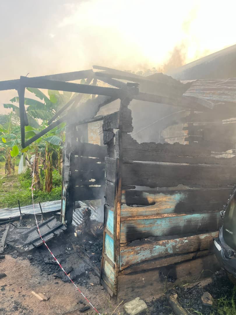 The fire, reported at 0632 hours, involved a kitchen and store room and spread to a Renault Duster salon car and a wooden kiosk. A man in his thirties, known as Kwabena Effutu, was burnt to death, and his badly charred body was handed over to the Police for conveyance to the St. Francis Xavier Morgue.